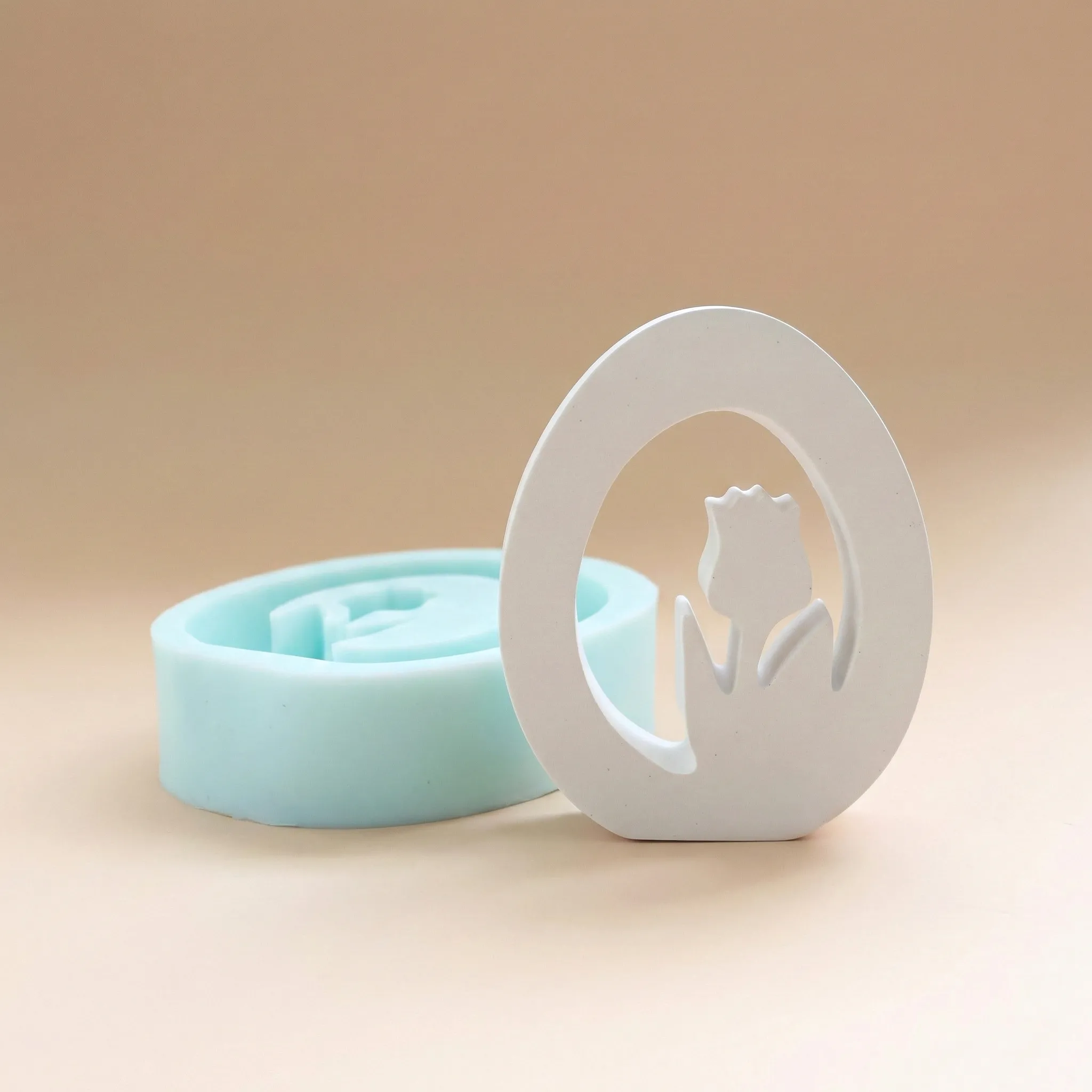 Zarif lale figürü ve modern oval formu ile tasarlanan bu silikon kalıp, dekoratif mum, biblo ve modern dekor objeleri üretmek isteyenler için özel olarak tasarlanmıştır.